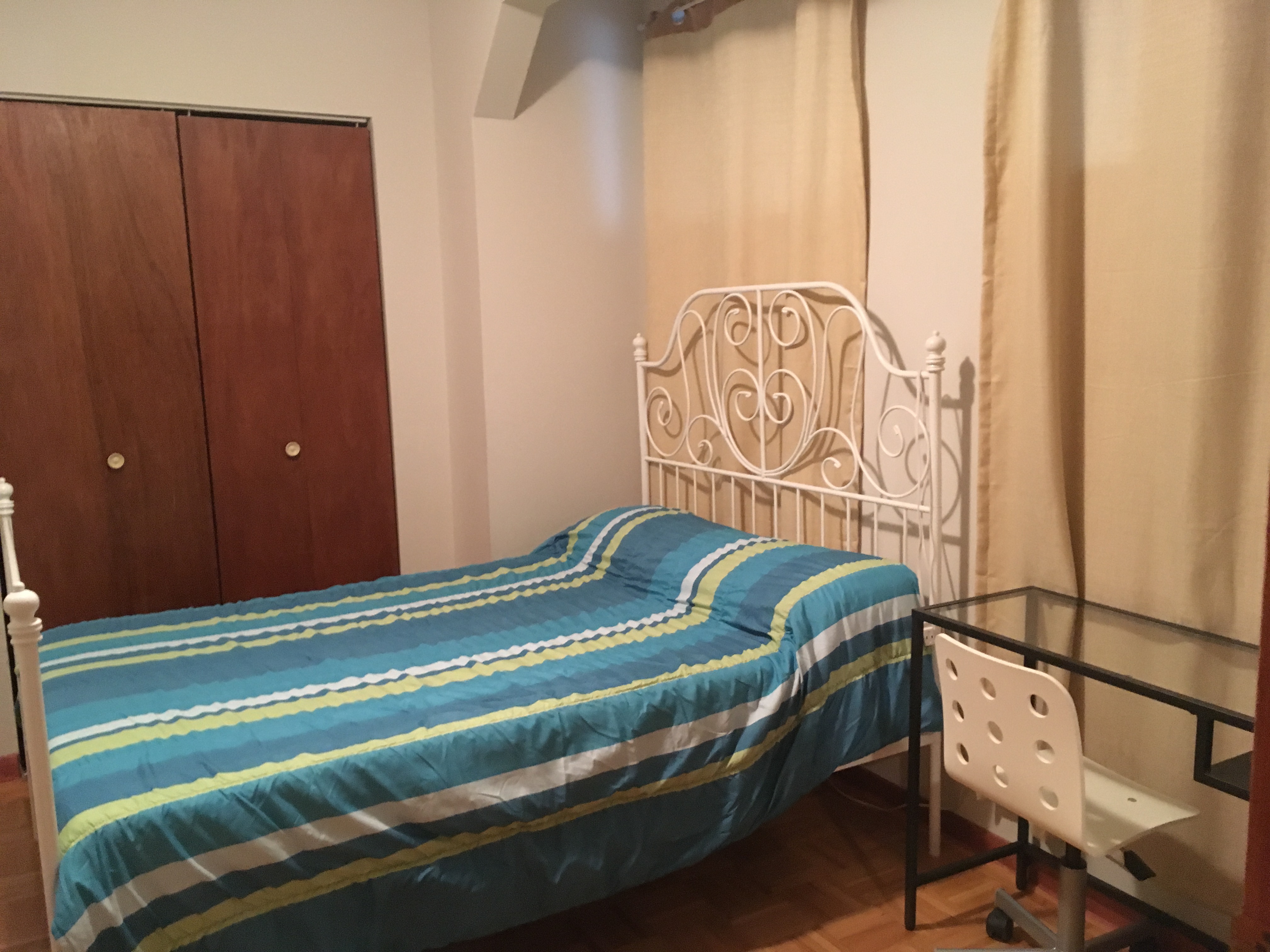 The apartment has 4 bedrooms; 1 of them located in the basement, a cosy living room, a fully equipped kitchen, 1 bathroom on the main floor and half bathroom in the basement.
